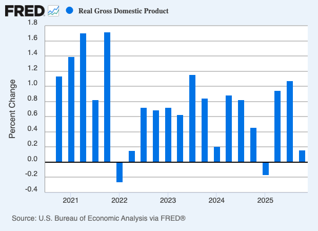 On Friday, the Commerce Department said the U.S. economy grew by just 0.7% during the last quarter of 2025. That number is annualized and adjusted for inflation. Wall Street had been expecting growth of 1.5%. Last month, the initial report said the economy grew by 1.5% during Q4.